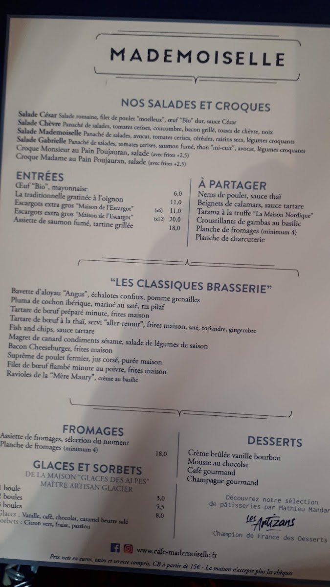 Café Mademoiselle, nestled in the heart of Paris at 21 Rue Duphot, offers a quintessential brasserie experience. This bustling, cozy eatery is renowned for its warm, welcoming atmosphere and genuine service. Guests rave about the delightful onion soup and escargot, showcasing authentic French flavors. The menu features classic dishes alongside tempting sharing plates, making it perfect for food lovers. Patrons appreciate the attentive staff, ensuring a memorable dining experience without pressure. Whether enjoying a leisurely breakfast or savoring a glass of wine with dinner, Café Mademoiselle captures the essence of Parisian dining, inviting all to return for more delicious moments.